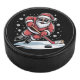 Funny Christmas Santa Playing Ice Hockey Xmas Puck