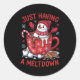 Funny Christmas Snowman Hot Chocolate Just Having Classic Round Sticker