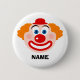 Funny circus clown buttons with custom name. Cute mime cartoon drawing with personalised text. Fun party favour for kid's Birthday party, event and more.