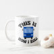 This funny gift for a city bus driver features a blue public transit bus inside the hilarious phrase This is How I Roll. A cool pop culture mug for a bus driver who likes modern humour.