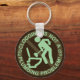 This funny keychain for clog dancers says, "Clogging is not a plumbing problem!" in light green letters. It shows a silhouette of a person plunging a toilet. The outer circle also has the outline of the bottom of two clogging shoes. This is a classic, humourous design for a clogging fan / clogger.