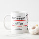 This design shows the classic coffee transformation through three simple stages, combining minimal text and expressive eyes in a clean, circular layout made for mugs.