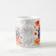 Funny coffee mug with grey background showing Marlee (EcoMarlee) mascot riding her motorcycle with the words " I cherish every leaf I run over"