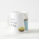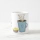 A funny coffee saying on this mug. A large blue mug of hot coffee with a muffin beside it. Message says' when it comes to my coffee mug, size does matter.