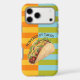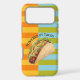 A fun, fabulous pop culture phone case in bold beautiful retro style in bright stripes of yellow, orange, green and blue, with a mouthwatering taco graphic. Whimsical text spells out "POWERED BY TACOS". This text may be edited to any text desired, or leave as shown. Protect your phone and express your love of tacos with this unique case. Available in many different sizes to fit both iPhone models as well as Samsung. The gender neutral color scheme works for anyone and any age.