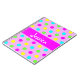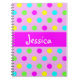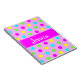 Graphic design of colourful polka dots on a pink background with a bold pink stripe on it, where you can write your own name.