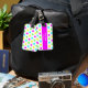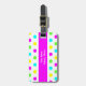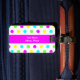 Graphic design of colourful (pink, yellow, green, turquoise) polka dots on a white background. This is a template, you may write your name and address on the pink stripe or you can delete the pink stripe and the name and address.