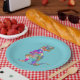 A funny painting of a scary, roaring, psychedelic art T Rex dinosaur. Colourful Tyrannosaurus Rex dinosaur with orange, yellow, pink, purple, blue and aqua green brush strokes created using acrylic digital art media which gives a vibrant yet organic feel. This dinosaur party plate design is fully customisable and the ideal gift for dinosaur lovers and artsy design fans. Dinosaur illustration created by artist Catherine Sweetman