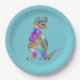 Funny Colourful T Rex Psychedelic Dinosaur Art Paper Plate