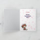 On the front of this cute Valentine Day's card is an adorable image of the backs of two rag doll cats. Each has a valentine heart at the end of their tail. Around the cat are floating pink and red hearts, and the text above says "From one COOL CAT". The inside of the card finishes the sentiment with the image of another "cool cat". This is an appealing card that isn't overly romantic, but you may easily change any of the text to anything else you'd prefer.
