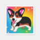 Funny Corgi Puppy Dog with green, yellow, blue and more colors in the background.