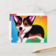 Funny Corgi Puppy Dog with green, yellow, blue and more colors in the background.