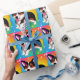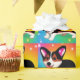 Funny Corgi Puppy Dog with green, yellow, blue and more colours in the background.