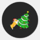Funny Corgi Pushing Christmas Tree Xmas Dog Mom Classic Round Sticker