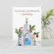 Funny design with a lighthearted take on the holidays during the lockdown featuring a covid-themed Christmas "tree" made up of a tower of toilet paper rolls decorated with pine branches, ornaments and Santa hat as well as hand sanitizers, wipes and a jug of bleach. Editable front text reads "Our tree looks a little different this Christmas." Back features additional text fields.