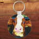 A humourous brown and white cow with a long face, big floppy ears and a tongue that's sticking out. We named him Jethro because we think he looks like a hillbilly! Fauvist Painting style portrait with distorted features and messy brushstrokes.