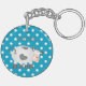 Funny Cow Moo And Blue & White Polka Dot Pattern Keychain is fully customisable. The image size, text and background colour can be changed by clicking on the “Customise” button.
