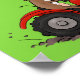This happy cow is driving a red tractor in cartoon style. Whimsical cartoon farming fun!