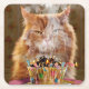 Funny Cranky Cat With Melted Birthday Cupcake Square Paper Coaster