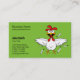 Funny Crazy Cartoon Chicken Green Background Wing Fling Business Card Template. Features a cartoon chicken with flying feathers. A simple and elegant business card that is fully customised. You can change text and background colour to make them perfect for your taste. On The back of the card there is room for notes or adding any other details. A standard business card size. Business card inspiration for any kind of business. Business card dimensions are 3.5" x 2". This business card is designed by superdazzle.com