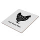A simple black silhouette graphic clipart image of a black hen with chalk lettering inside it that reads crazy chicken lady inside it.