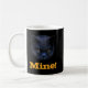 Cross Cat says Mine! Coffee Mug. Funny Cats and Caffeine. A scowling and grumpy photograph of a cross black cat with scary yellow eyes on a black background. A funny cat gift for the cat lover. A dark and brooding scary cat photo, he's glowering at you! He's not grumpy, he's cross! From an original cat photograph of Cross Cat by Paul Stickland. ©Paul Stickland