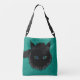 Black Cat with Blue Eyes Crossbody Bags or Tote Bags - or Choose / Add Your Colour / text - MIGNED Painting Design