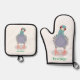 Funny curious pigeon cartoon illustration oven mitt & pot holder set