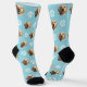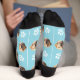 Funny Custom Dog Photo with Paw Pattern Turquoise Socks