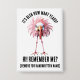 Perfect for any kind of reunion, whether you’re organising a family get‑together or a school class reunion, this fun button brings the perfect mix of humour and nostalgia. The expressive flamingo artwork adds personality and surprise, making it ideal for summer gatherings. You can remove or customise the bottom text (“Hi! Remember Me?”) using the “personalise this” option, or add your class year, family reunion date, or location. A standout ice-breaker that gets everyone talking and reconnecting! To remove or customise the bottom line of text, click "personalise this" under the product title and delete the text by backspacing so nothing appears there!) and it can be handwritten by the wearer. You could also add a custom class year or family reunion date and location here!