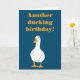 Customize both the message on the front and the inside of this card to create the perfect greeting for any occasion. This card features a simple illustration of a white duck with an orange bill and feet against a navy blue background with your message in coordinating orange. Have some fun creating your own duck-themed play on words message or leave the funny "Another ducking birthday?" greeting as is.