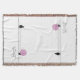 Quirky pigeon throw blanket featuring two funny birds on a wire stuck with wads of chewed bubblegum. One bird blowing a big pink bubble, another bird stepping in gum. Use the easy text template to add initials, monogram, name, or cute short quote. Edit to change the white background to any colour you wish. ♡ Idyllfire