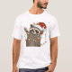 A funny winter holiday design of cute racoon tangled in Christmas lights.
