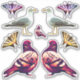 Identified flying objects : seagulls, butterflies and pigeons sticker collection.