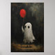 Funny Cute Ghost Holding Red Balloon, Vintage Poster