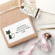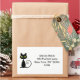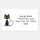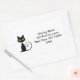 Humourous sticker labels show a cool black cat with green eyes and a curling tail. The name and address display to the right in a modern font. Customise and personalise the text.