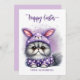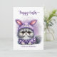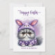 Funny Cute Kitty Bunny Costume Purple Happy Easter Holiday Card