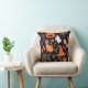 Funny Cute Orange Black Halloween Symbols Pattern Throw Pillow.