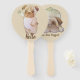 The two cute little brown pugs on this hand fan are original colour pencil drawings. on one side of the fan the little pug is waving hello and on the other side of the fan the other cute pug is showing his bottom and curly tail. The fun pug slogans with the illustrations are customisable for you to change to your own text if you wish to. keep cool with this cute hand fan and at the same time bring a smile to peoples faces with the cute pug characters.