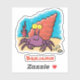 This happy hermit crab cartoon is a bright and colourful purple and orange with a blue background. Take me to the sea!