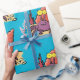 This happy hermit crab cartoon is a bright and colourful purple and orange with a blue background. Take me to the sea!