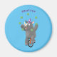 This funny rhino is juggling balls and riding a unicycle in happy cartoon illustration style.