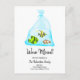 Funny cute tropical fishes illustration moving announcement with three little fishes in a plastic moving aquarium bag.
