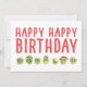 This is a very funny birthday card with cute little vegetable characters. With this card you can make people smile. A fun group of brussels sprouts with tiny hats and wobbly eyes that look right at you. Happy birthday in big red modern contemporary wording. Personalise it with your own message.