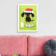 Wiener Dog Christmas. Funny art illustration of a black and tan Dachshund wearing a Santa hat sitting in front of a glass of milk and a plate of frosted holiday cookies. A fun canvas print for anyone who loves a Doxie. Visit Jenn’s Doodle World for even more products featuring this original weenie dog design. ©Jenn Inashvili