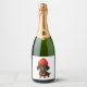 Funny dachshund with strawberries and hat fruity sparkling wine label