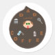This sheet of round stickers features a cartoon of a Dad who is a coffee monster. His face is inside a big droplet of coffee and he has a creepy tongue and is starting to go bald. Sugar, milk, coffee and a spoon surround him, everything he needs for his favourite drink. The light brown text says, “Dad loves coffee”.