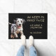 "No need to knock twice, We have a Dalmatian" declares this funny door mat. The text is in pale tan at the right side, while an picture of a adorable Dalmatian dog is at the left. Everything is placed on a black background.