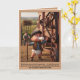 The card includes a fully customisable slogan, currently written in playful Victorian‑style prose congratulating the baby on taking their first steps — and cheekily suggesting the cherub is now ready to muck out the pigs.