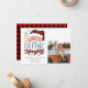 A cute and funny Christmas greeting multiple colours on the front and a red and black buffalo check plaid on back. , Dear Santa Please Define Naughty script with santa hat and snowflake. Add your family photo and your personal message with ease.